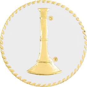 SW-C181WHE_G - One Bugle $27.50 One Bugle Seal Insignia pin sold by the piece (NOT pair). Measures 15/16" in diameter. Comes with 2 pins on the back. Finish GoldRhodiumNickel Attachment Double Clutch