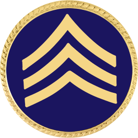 SW-C635BE_G - Sergeant Chevrons $32.00 Sergeant Chevrons Pin measures 15/16" (slightly smaller than 1"). Comes with 2 clutch pins on the back. Finish GoldRhodiumNickel Attachment Double Clutch