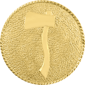 Left facing fire axe collar insignia, plain background.