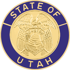 SW-UTE_G - State of Utah $24.00 Custom Product - Delivery between 3-5 weeks. State of Utah measures 15/16" round (just under 1"). Available in Gold or Silver finishes. Sold as each (not sold in pairs). Finish GoldNickelRhodium Attachment Double Clutch Collar Brass Size 15/16" (largest)