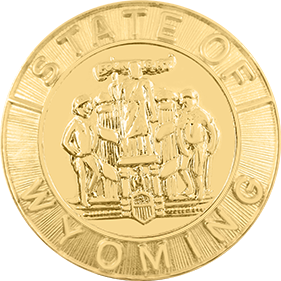 SW-WYP_G - State of Wyoming $24.00 Custom Product - Delivery between 3-5 weeks. State of Wyoming measures 15/16" round (just under 1"). Available in Gold or Silver finishes. Sold as each (not sold in pairs). Finish GoldNickelRhodium Attachment Double Clutch Collar Brass Size 15/16" (largest)