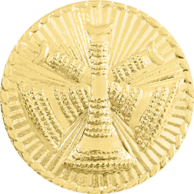 SW-C176TP_G - Three Crossed Bugles $24.00 Three Crossed Bugle Fire Collar Insignia. Measures 15/16" in diameter - just under 1". Sold by the Piece (not pair) Finish GoldRhodiumNickel Attachment Double Clutch