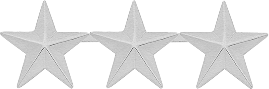 SW-C517S_3N - Three Star Collar Brass, 0.97", Nickel Finish $41.50 Three Smooth Star Collar Brass in your choice of size Manufactured by Smith & Warren. Sold per unit (not per pair). Pin Back. Please allow 30 days for manufacture & delivery. Finish NickelRhodiumGoldBlackPinkGol-Ray Collar Brass Size 15/16" (largest)0.75" (3/4")0.65"0.38" (3/8") (smallest)0.5" (1/2")