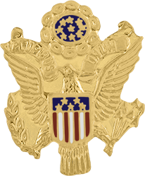 SW-C613M_G - US Coat of Arms $32.00 US Coat of Arms Pin measures 15/16" (slightly smaller than 1"). Comes with 2 clutch pins on the back. Finish GoldRhodiumNickel Attachment Double Clutch