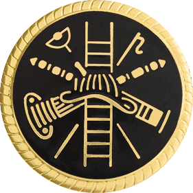 SW-C197FBKE_G - Vertical Ladder Fire Scramble $27.50 Vertical Ladder Fire Scramble Seal Insignia pin sold by the piece (NOT pair). Measures 15/16" in diameter. Finish GoldRhodiumNickel Attachment Double Clutch