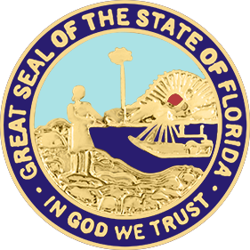 SW_FLGREATM_G - Great Seal of Florida $32.00 Custom Product - Delivery between 3-5 weeks. Great Seal of Florida measures 15/16" round (just under 1"). Available in Gold or Silver finishes. Sold as each (not sold in pairs). Finish GoldNickelRhodium Attachment Double Clutch Collar Brass Size 15/16" (largest)