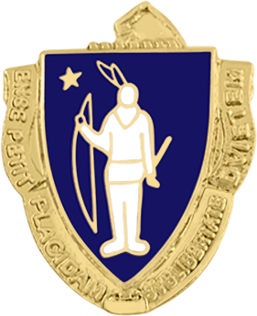 SW-C950M_G - Massachusetts Coat of Arms $32.00 Custom Product - Delivery between 3-5 weeks. Massachusetts Coat of Arms Seal measures 15/16" round (just under 1"). Available in Gold or Silver finishes. Sold as each (not sold in pairs). Finish GoldNickelRhodium Attachment Double Clutch Collar Brass Size 15/16" (largest)