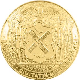 SW-NYCP_G - New York City 1625 $24.00 Custom Product - Delivery between 3-5 weeks. New York City 1625 Seal measures 15/16" round (just under 1"). Available in Gold or Silver finishes. Sold as each (not sold in pairs). Finish GoldNickelRhodium Attachment Double Clutch