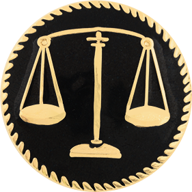 SW-C134BKE_G - Scales of Justice $26.00 Scales of Justice Pin measures 15/16" (slightly smaller than 1"). Comes with 2 clutch pins on the back. Finish GoldRhodiumNickel Attachment Double Clutch