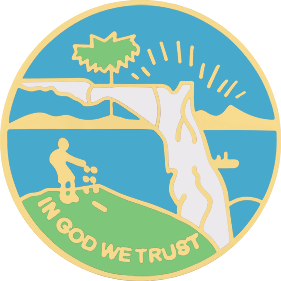 SW-FL_SHERIFF_M_G - State of Florida $32.00 Custom Product - Delivery between 3-5 weeks. State of Florida measures 15/16" round (just under 1"). Available in Gold or Silver finishes. Sold as each (not sold in pairs). Finish GoldNickelRhodium Attachment Double Clutch Collar Brass Size 15/16" (largest)