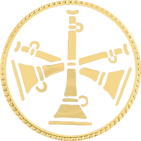SW-C177FWHE_G - Three Crossed Bugles $26.00 Three Crossed Bugles Insignia pin sold by the piece (NOT pair). Measures 15/16" in diameter. Comes with 2 pins on the back. Finish GoldRhodiumNickel Attachment Double Clutch